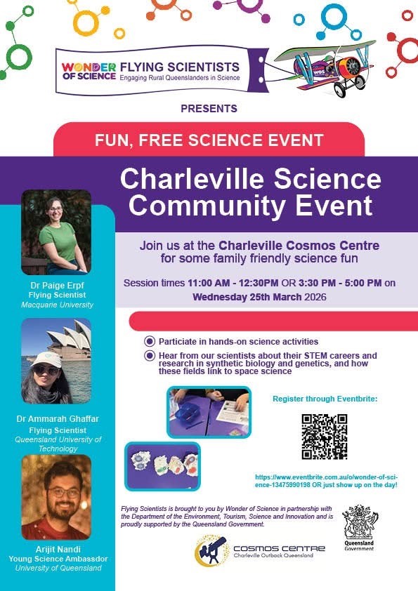 CHARLEVILLE is preparing for the return of the ‘Flying Scientists’ at the Charleville Cosmos Centre. Dr Paige Erpf from Sydney’s Macquarie University and Dr Ammarah ...